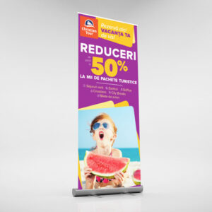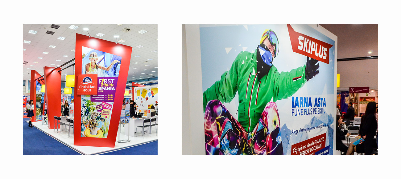 The pace depended entirely on the season. Tourism fair periods, especially Romexpo, were controlled chaos: multiple formats, tight deadlines, high visibility. I designed the exhibition stand, all campaign materials, and everything in between. Outside of fair season, the rhythm was steadier but the volume was still high. In a single year, the output was substantial.