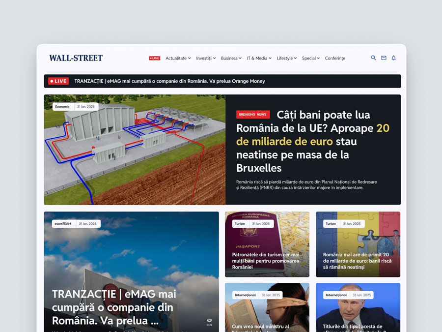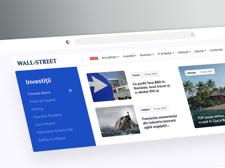 This project involved a complete redesign of the Wall-Street.ro website, currently in progress. I am thrilled to have once again gained the trust of Internet Corp, as we work together to bring a fresh and modern look to this prominent web app.